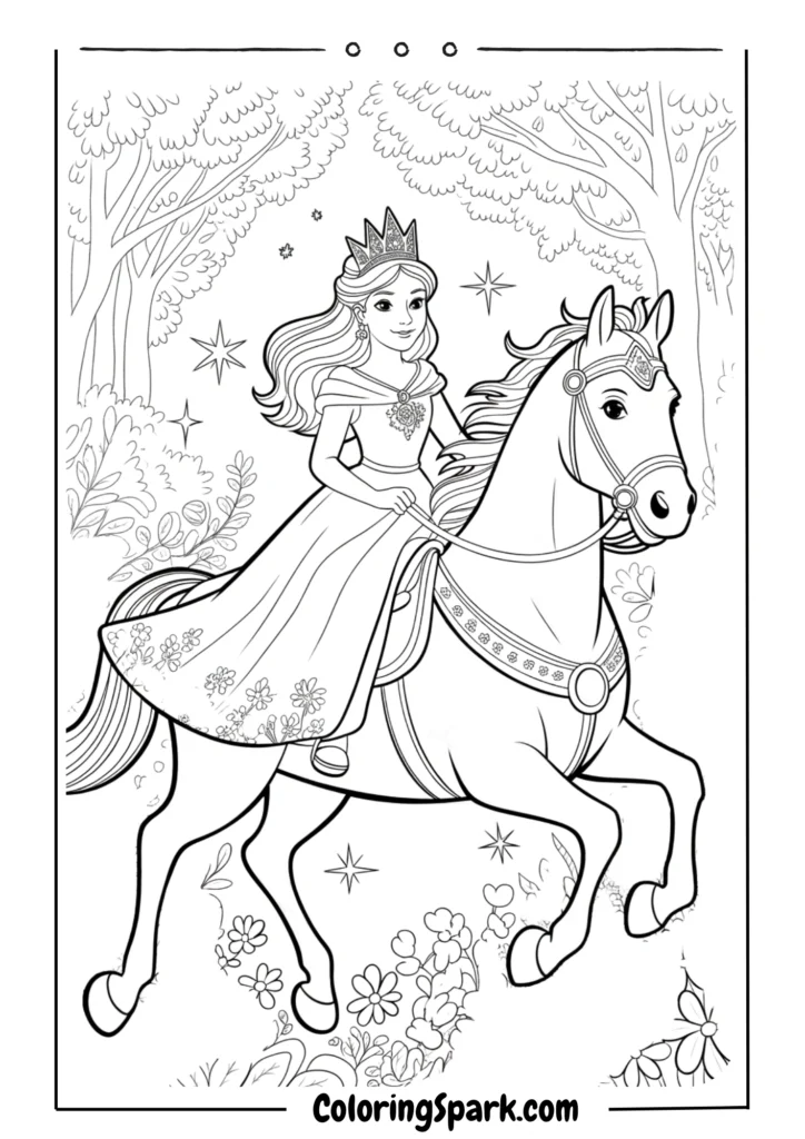 Fantasy and Unicorn-Inspired Horses Let imagination run wild with our magical horse coloring pages collection! These pages blend the elegance of horses with fantastical elements like flowing manes, ethereal backgrounds, and mystical accessories. They’re incredibly popular with kids who love fairy tales and fantasy stories.